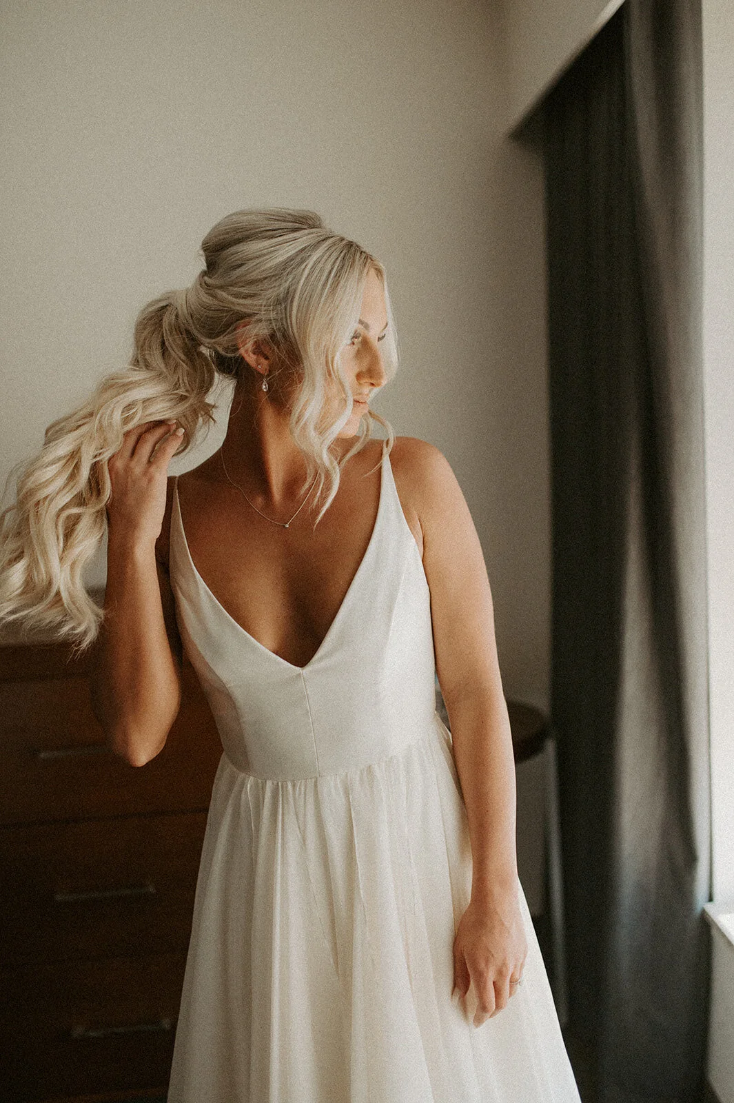 /Our recent Lily Bride, Amy stunned wearing a gown by designer Martina Liana for her Fall 2020 nuptials! One AHH-Mazing feature of this designer is that they can accommodate amazing customizations of their gowns. If you can dream it up, there’s a good chance these amazing designers can make your vision come to life. Amy came in to our shop looking for a long sleeve wedding dress, and ended up completely customizing a beaded lace sleeve onto an existing Martina Liana bridal gown style. We asked Amy to give us a little insight into her bridal shopping experience and being a #lilybride. Check out what she had to say!