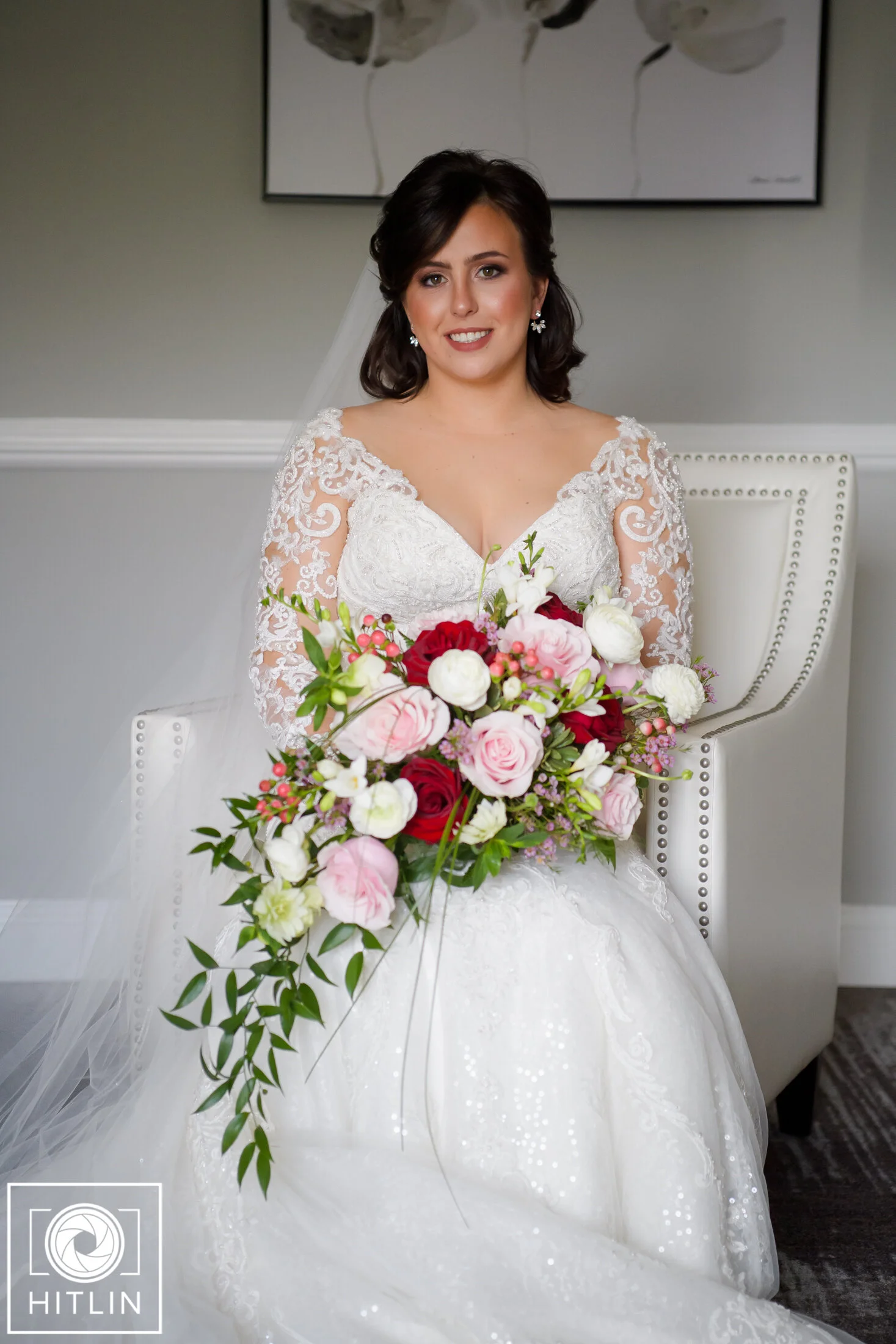 It has always been my dream to have a long sleeve wedding gown but I had a hard time finding one that I loved. I was beginning to lose hope and moved to looking at different style dresses. I tried on the Martina 895 and loved the dress but something was missing. Once I was informed that Martina would add a custom sleeve, I knew that was the dress for me. Laura pulled out some other Martina long sleeve gowns so we would get an idea of what customization I wanted. Once I decided on a design, Laura drew a photo of the customization and sent it to Martina for me. The process was so easy and I trusted Laura's experience and knowledge to guide me in the front direction.