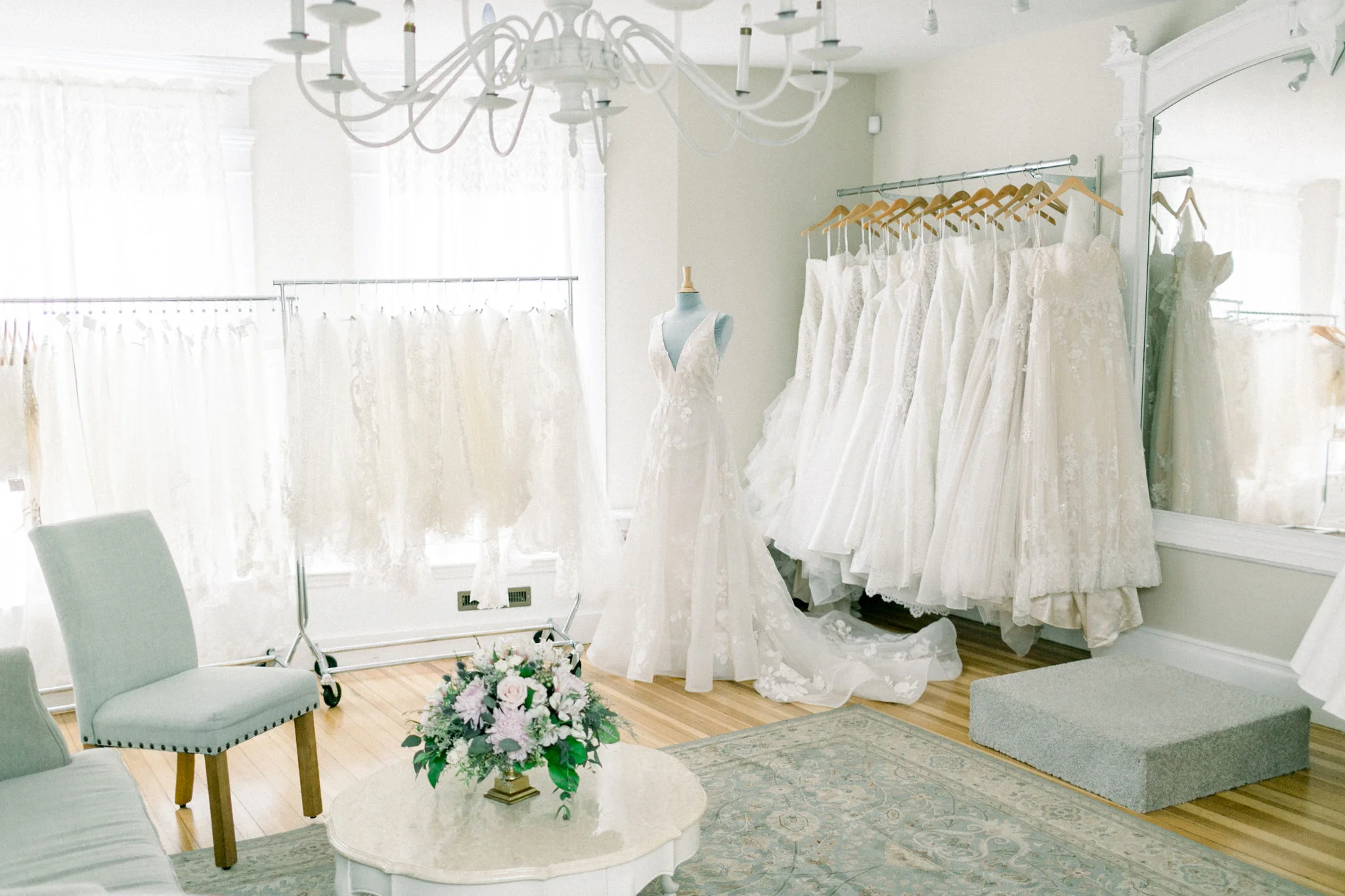 We have 50 gowns under $1500, with the lowest gowns starting at $199 and many of our gowns are between 50-70% off! Lily Saratoga goes to Bridal Market twice a year and purchases for our shop, and with all those gowns coming into the store, we always have beautiful gowns available for sample sale.